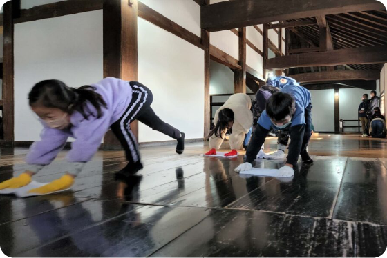 - 子どもたちによる“犬山城みらいサポーター”の活動では、天守の床磨きや勉強会を通じて、犬山城への愛情を育んでいます。